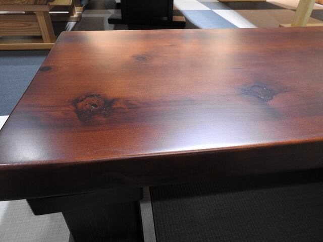 木材の性格上、「反り」「割れ」「ねじれ」「きず」等の不具合がすべての商品に大なり小なり見られます。一枚板いわゆる本物である証拠でございますので、お許しをいただければと思います。