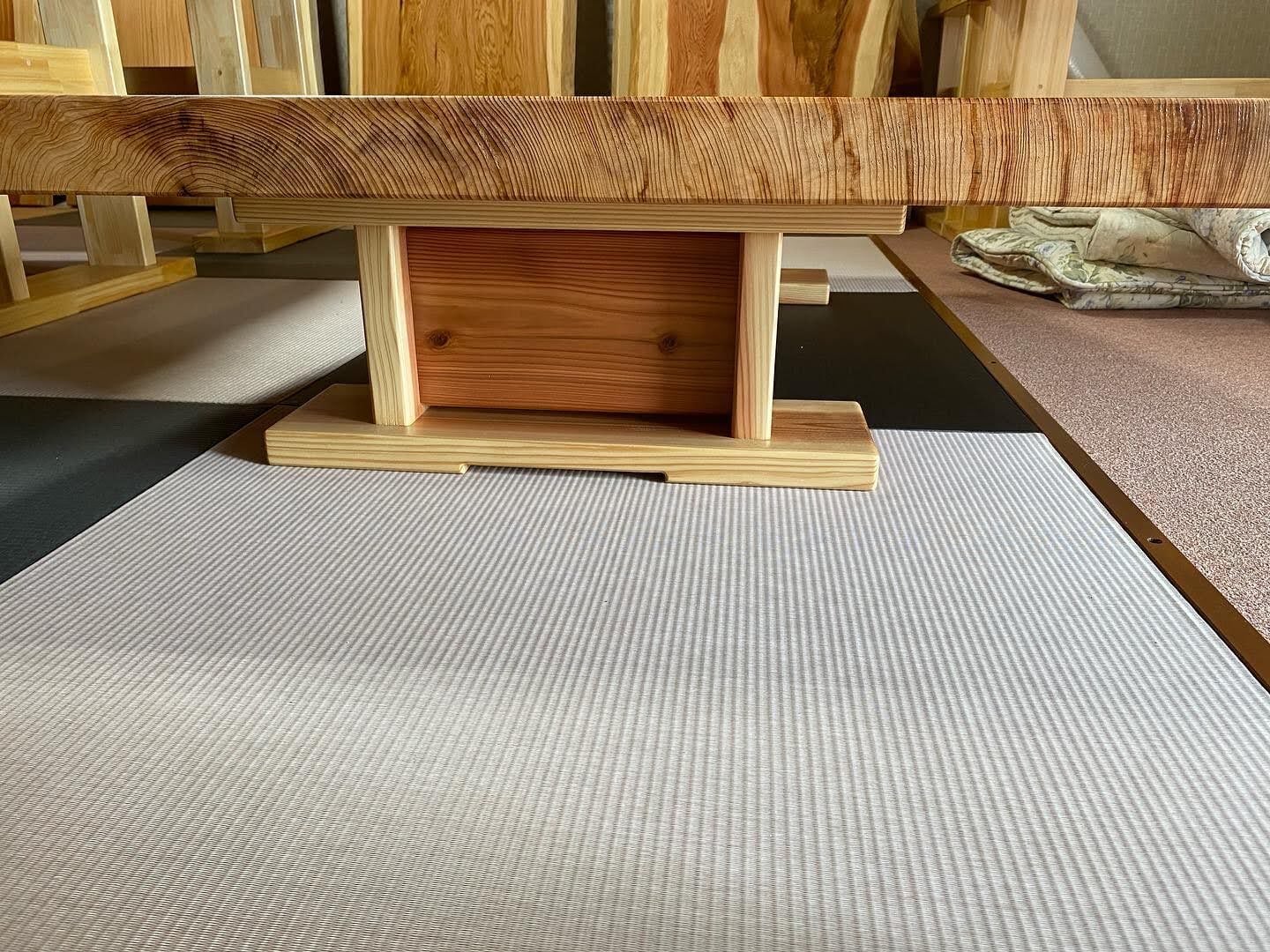 消費税を含めました金額です。世界に一つしかない秋田杉の一枚板です。脚付きです。荷受けのお手伝いをお願いをする場合がございます。